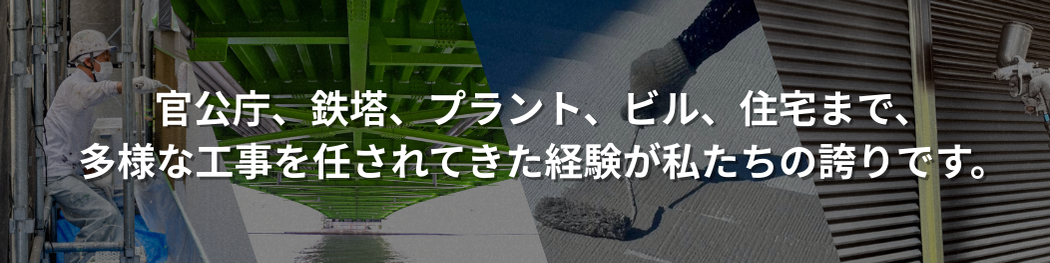 ビル、施設、工場、住宅といった建築物から、鉄塔などの大型構造物まで、幅広い建造物の塗装工事を行っています。 古くなった塗装を落とす「ケレン作業」から始まり、下地処理、防錆処理をしっかり行ったうえで、吹付塗装やハケ・ローラーによる塗装まで、一連の工程に携わっていただきます。 ※錆びや汚れを丁寧に落とし、塗装が長持ちするよう下準備をしてから仕上げていく仕事なので、 見た目をきれいにするだけでなく、建物や鉄塔を守る“保護”の役割も担う、やりがいのある仕事です。 ※試用期間3カ月あり(労働条件に変動なし) |