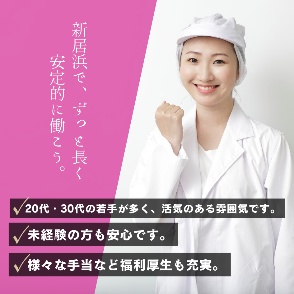 <必須条件> ・高卒以上(未経験歓迎) ・年齢59歳まで(定年のため) 経験よりも“人柄”を重視しています。お菓子が好き・新しいことに挑戦したい、そんな気持ちがあれば大歓迎です。 <歓迎条件> ・食品工場での製造経験をお持ちの方 ・食品衛生管理者資格をお持ちの方 |