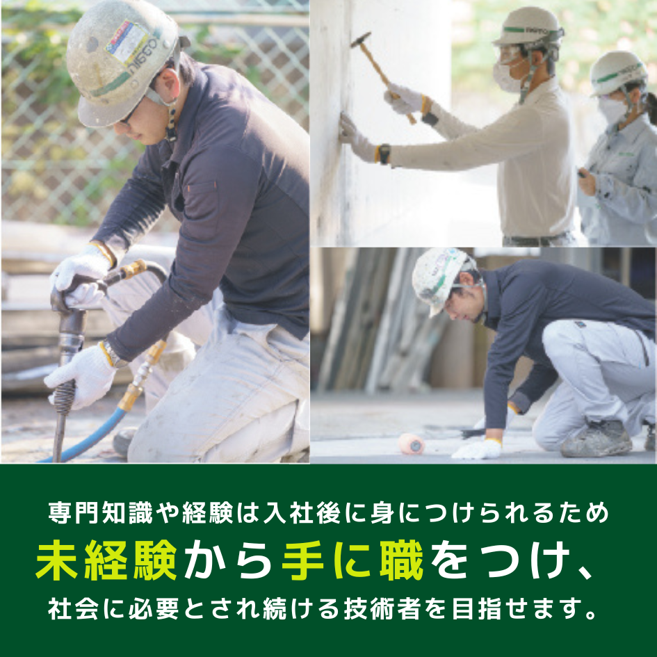 建物や橋などの社会インフラを長く安全に使い続けるため、 工事の進行管理や、防水・補修工事の現場作業を行う仕事です。 ★未経験の方は、先輩社員のサポートからスタートし、基礎から丁寧に教えます。 [具体的な業務内容] 学校・病院・マンション・工場などの建物や、 橋・桟橋といった土木構造物を対象に、以下の業務を行います。 ・劣化箇所の確認や写真撮影などの現場確認作業 ・建物を雨や水から守るための防水工事 ・ひび割れや傷んだ部分の補修・補強作業 ・工事が安全かつ予定通り進むよう、工程や作業内容の管理 ※重機作業や難しい作業は、経験を積んでから段階的に担当します。 [未経験者向け補足] 専門知識や経験は入社後に身につけられるため、 未経験から手に職をつけ、社会に必要とされ続ける技術者を目指せます。 [特徴と強み] ・既存インフラの維持・再生を担う事業で、将来性が高い ・災害大国・日本において社会貢献性が非常に高い ・SDGs推進企業(新居浜市認定) |